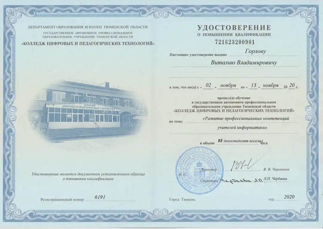 Мой педагогический путь начался в 2014 году в МАОУ «Ярковская СОШ» Тюменской области, где я преподавал информатику и математику. Этот опыт стал основой формирования моей профессиональной позиции и стремления к постоянному развитию.