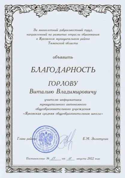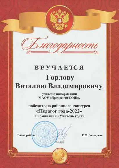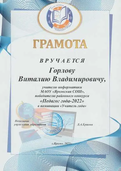 В 2026 году я вернулся в родную МАОУ «Ярковская СОШ», где продолжаю свою педагогическую деятельность в качестве учителя физики и математики и классного руководителя. Моя работа выходит за рамки учебного кабинета: я развиваю дополнительное образование в области робототехники и электротехники, формируя у обучающихся инженерное мышление, практические навыки и интерес к науке.